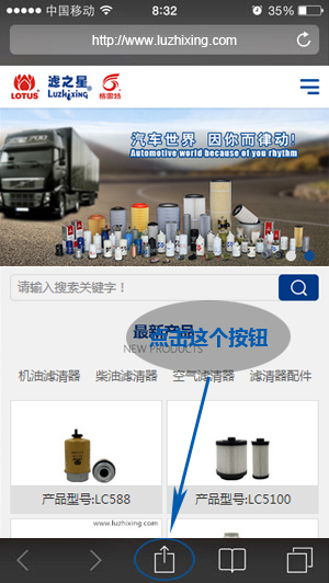 答:(1)用苹果原生浏览器Safari打开您的手机网站 (2)点击下方工具栏第三个按钮